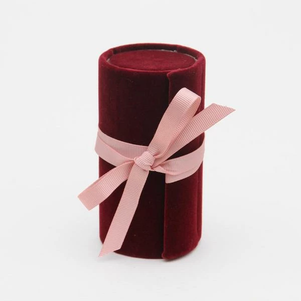 This gorgeous dark burgundy velvet jewellery storage solution has 3 stacking compartments with a rose gold finish. Perfect for displaying your jewellery or stowing it tidily away. H 110 x D 65mm 2 pots and 1 ring section Suede-effect lining Ribbon tie closure