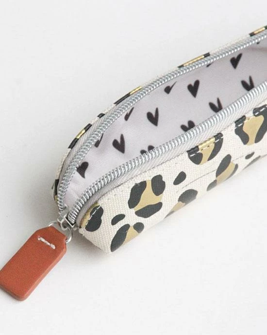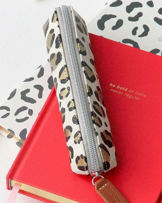 This Small Pencil Case is a beautifully tactile accessory that will bring a touch of luxe to your desk and is a practical size for the girl on the go. The slim pencil case shape and silver zip fastening make this ideal for essential pens and stationery, but it is equally useful for makeup brushes and mascara. Dimensions: H4 x W19.5 x D3.5 cm Printed lining Silver colour zip Leather-look pull Perfect for make up brushes