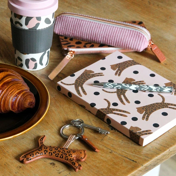 Our keyring collection welcomed a new friend. This keyring is in the shape of a leaping leopard that conveys energy and liveliness. The keyring matches the tan branded tag for a sophisticated and versatile accessory that will go perfectly with your keys and handbags. Measurements: H 70 x W 95 x D 7 mm Vegan leather feel Silver hardware Tan branded tag