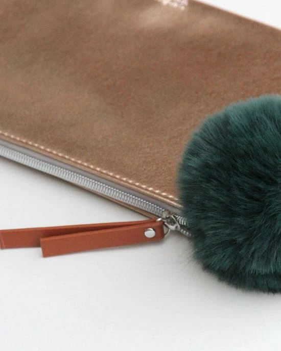 Caroline Gardner Rose Gold Pouch With Green Pom