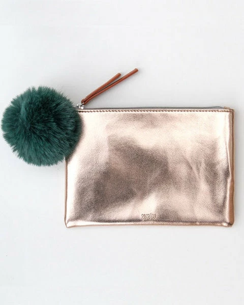 Caroline Gardner Rose Gold Pouch With Green Pom