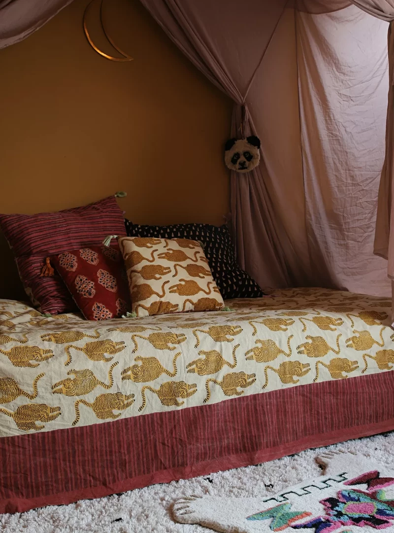 Dit mooie plaid is met de hand bedrukt door lokale handwerklieden