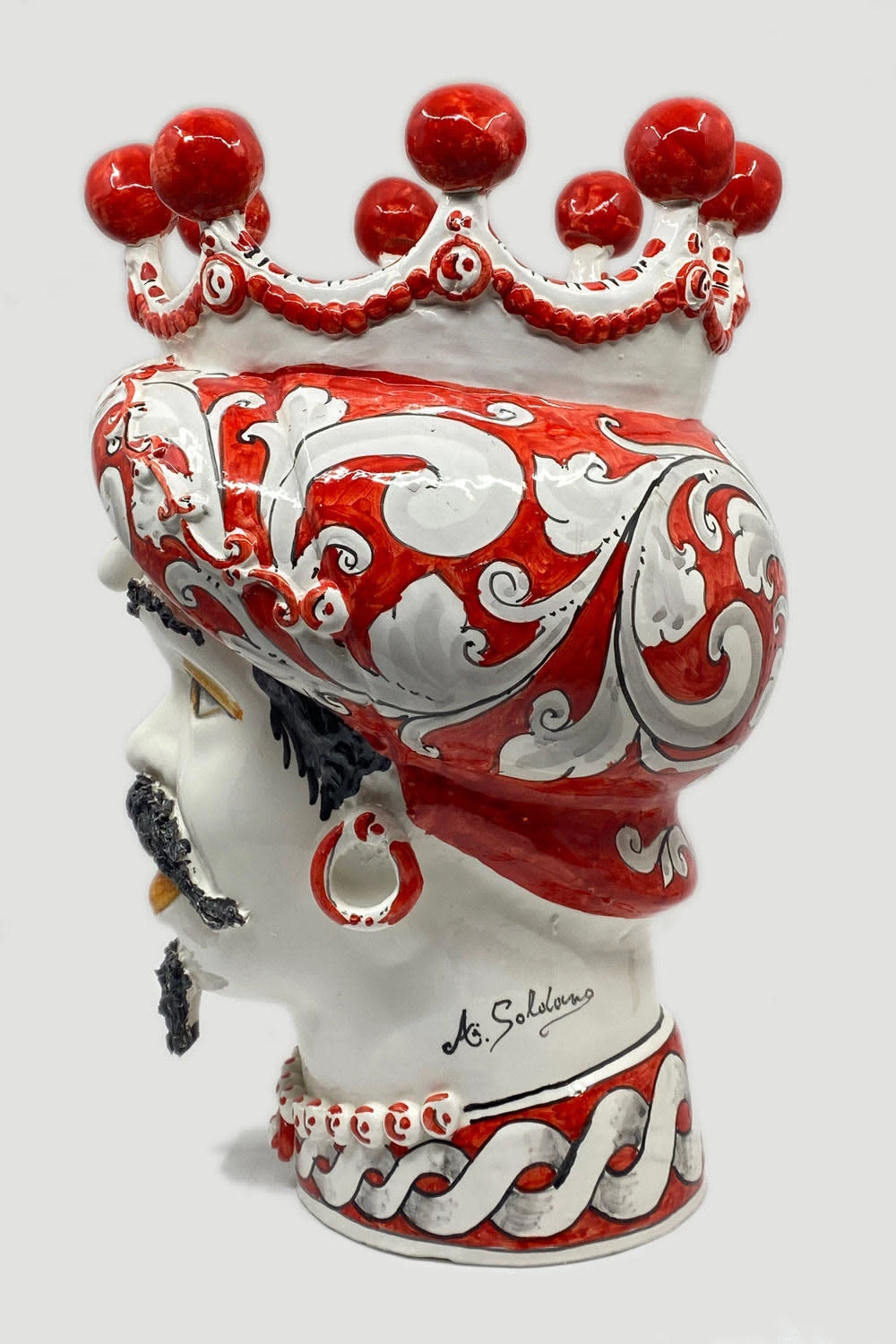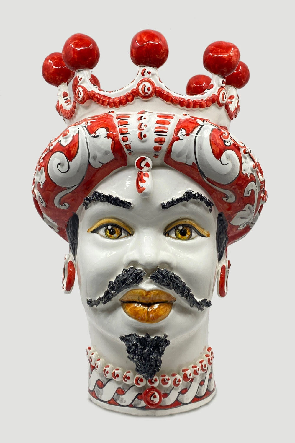Melting Pot Amsterdam Teste di Moro Vaas van Keramiek Man Rood /Wit +/-43cm Met de hand gemaakt en beschilderd.