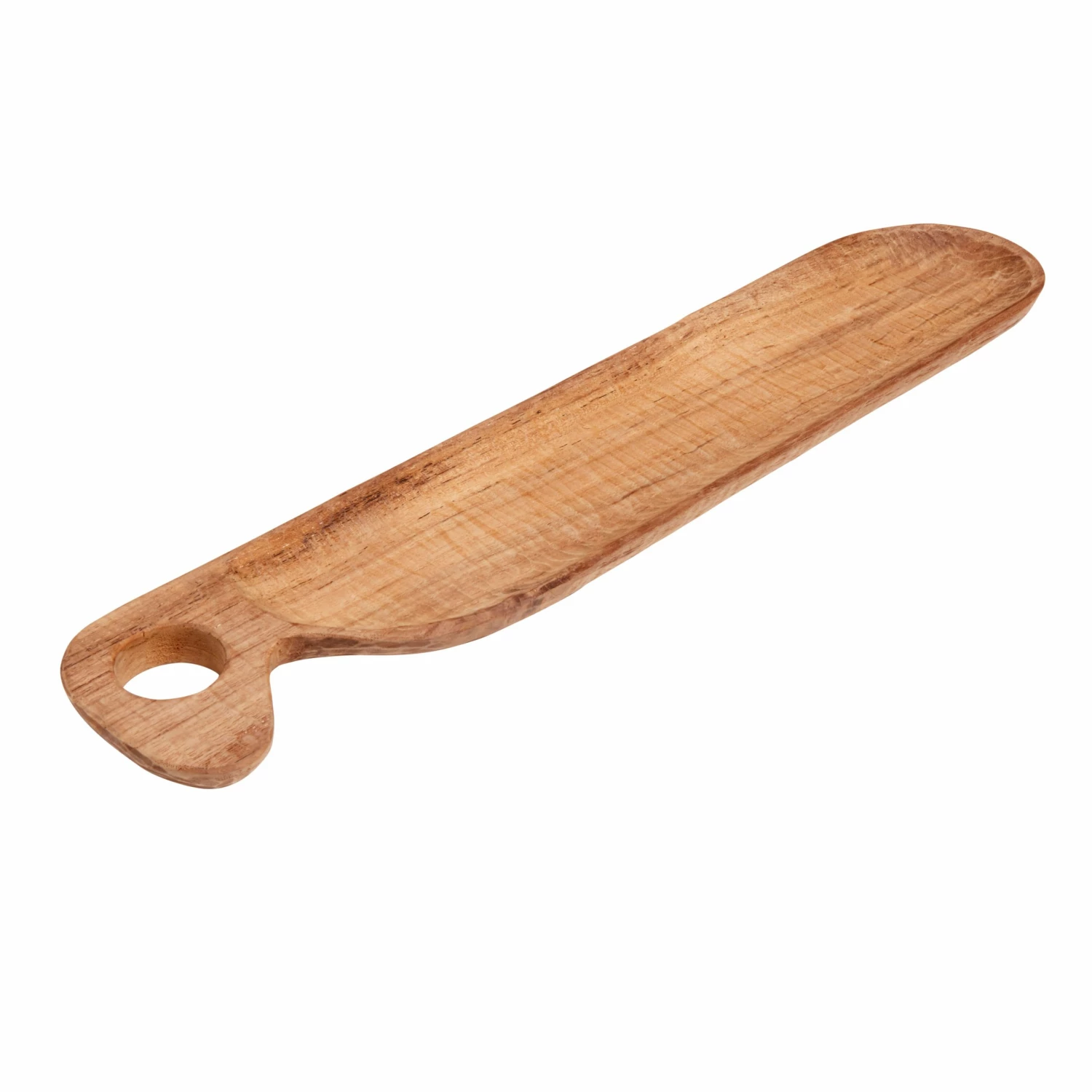 Tapas board in teak from Muubs. Roar is handmade, and with the long shape it is perfect for serving of a flute or other light appetizers. The board has a natural shape, as it was shaped by nature. The handle makes it easy to move and send the wooden board around the table. With Roar flute you get beautiful and unique tapas board. Outdoor use: No.