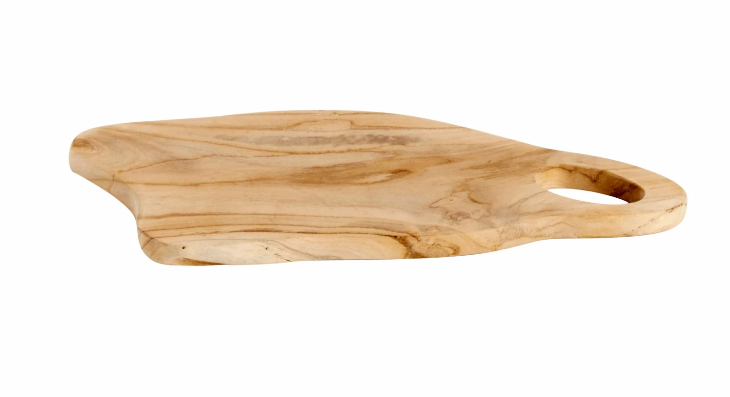 The cutting board Louie S is made of teak root and has a handle at the end that makes it easy to lift or hang on a rack. The board has an authentic and natural shape. A teak board has many functions. For example, use Louie S as a cutting board, serving board or a tapas board. The natural teak colour will adorn in any kitchen. The teak cutting board need no treatment before using. If a darker wood colour is desired, cooking oil may be applied. Outdoor use: No.