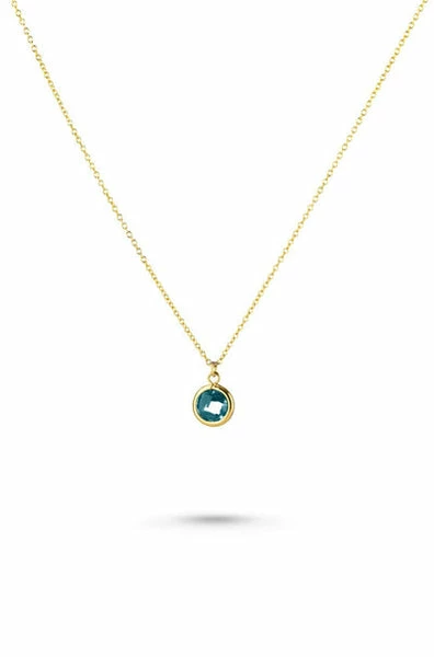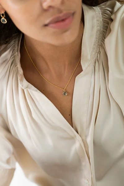 This stylish Erinite Green Round Glass Charm Necklace is beautifully packaged in a signature glass bottle. This range of jewellery is designed in a Devon studio, working with skilled craftsmen and women across the globe to produce unique gold and silver pieces. Measurements and composition 9mm 16k Gold Plated Erinite Round Glass Pendant Adjustable 14k Gold Plated Sterling Silver Chain which can be worn at 39cm, 41cm or 43cm (16-18 inches) Glass Bottle and Cork This necklace has earrings to match. Packaging Inspirational packaging is part of the One and Eight brand. Your jewellery will come beautifully gift packaged in a unique glass bottle with a cork stopper. All products are packaged in reusable or biodegradable materials. ref: 2275