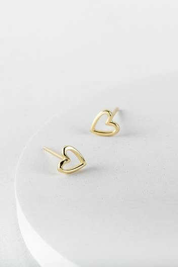 A simple, pretty heart stud, beautifully presented in a reusable glass bottle. This jewellery is designed in a Devon studio, working with skilled craftsmen and women across the globe to produce our unique gold and silver pieces. Measurements and composition 6mm 14K Gold Plated Sterling Silver Studs Gift Packaged in Elegant Glass Bottle. ref: 2016
