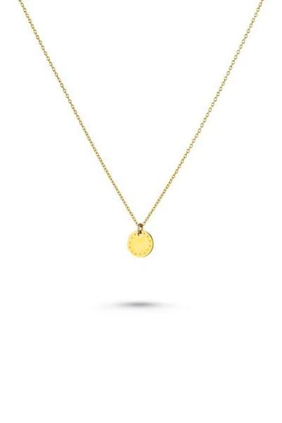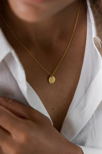 All designed in Devon, working with skilled craftsmen and women across the globe to produce unique gold and silver pieces. A beautiful pin dot charm suspended on a gold chain. The Oslo Necklace is the perfect necklace for everyday wearing. Measurements and materials 10mm gold plated fine silver charm Adjustable 43, 41 or 39cm chain in Gold Vermeil (14k gold plating over sterling silver) Gift Packaged in an Elegant Glass Bottle. Packaging Inspirational packaging is part of the One and Eight brand. Your necklace will come beautifully gift packaged in a unique glass bottle with a cork stopper. We continually strive to produce jewellery and gifts that have minimal impact on the environment. All our products are packaged in reusable or biodegradable materials. ref: 2211
