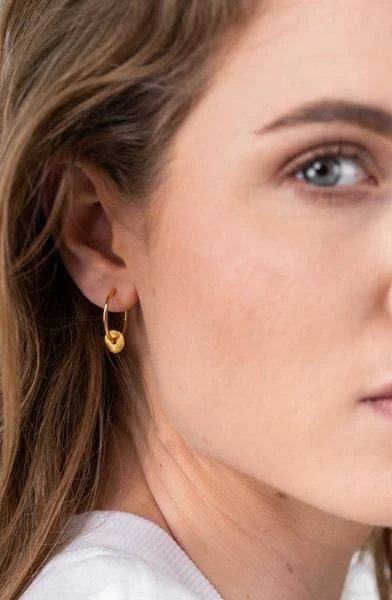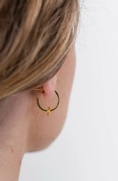 Gold Tolvan Hoop Studs can be worn with or without the charm making them versatile and great value for money. Our sterling silver hoops are so comfortable you’ll wear them every day. All designed in Devon, working with skilled craftsmen and women across the globe to produce unique gold and silver pieces. Measurements and materials 8mm 24K Gold Plated Fine Silver Charms 18mm 14K Gold Plated Sterling Silver Butterfly Back Hoops Gift Packaged in Unique Glass Bottle These earrings have a necklace to match. ref: 2072