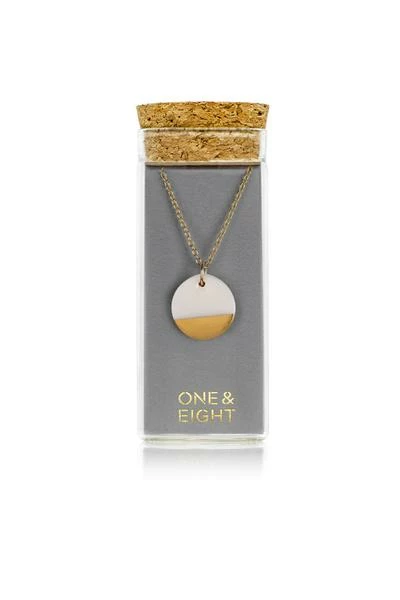 A classic bestselling necklace, handmade and finished in a Devon studio. This simple and elegant design works perfectly with every outfit. The disc pendant sits on an elegant gold vermeil chain and comes gift packaged in a unique glass bottle. The porcelain discs are made via an intricate process where clay is coloured, crafted, fired and glazed, before adding the final gold or silver design. Real gold or silver lustre is added to the surface of each charm before the final firing. This seals the lustre into the glaze creating elegant, durable jewellery. Product Information 15mm handmade white porcelain disc charm with gold dipped design Adjustable 43, 41 or 39cm / 16-18 inch 14k gold plated sterling silver chain Glass bottle and cork Each porcelain necklace is made by hand, so is unique in form and size. This necklace has earrings to match. ref: 0041