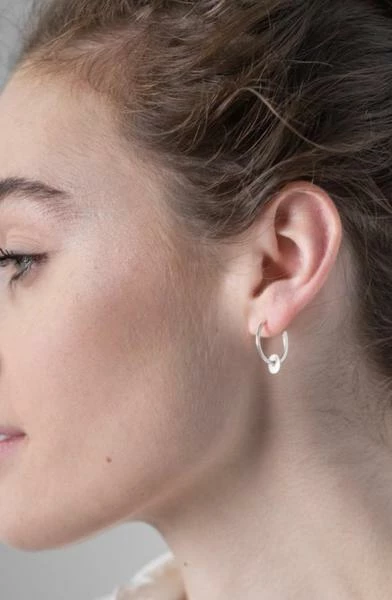 Silver Tolvan Hoop Studs can be worn with or without the charm making them versatile and great value for money. The sterling silver hoops are so comfortable you’ll wear them every day. All designed in Devon, working with skilled craftsmen and women across the globe to produce unique gold and silver pieces. Measurements and materials 8mm Fine Silver Charms 18mm Sterling Silver Hoop Studs Glass bottle and cork These earrings have a necklace to match. ref:2010