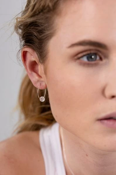 These pretty, beach inspired earrings are presented in a beautiful glass bottle. They make a perfect gift or treat for yourself. Measurements and composition 6mm Recycled Glass Beads 20mm Sterling Silver Hoops ref:2128
