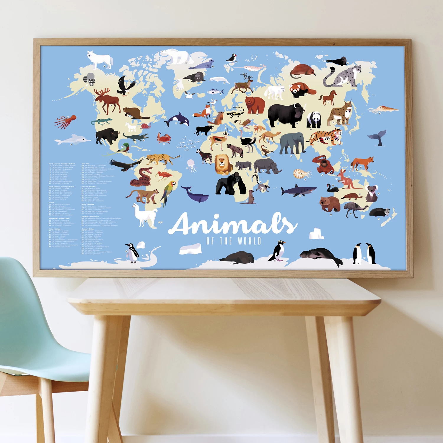 Once finished, the poster becomes a decorative piece for the kids room. To frame it use a frame size 100 x 70 cm.