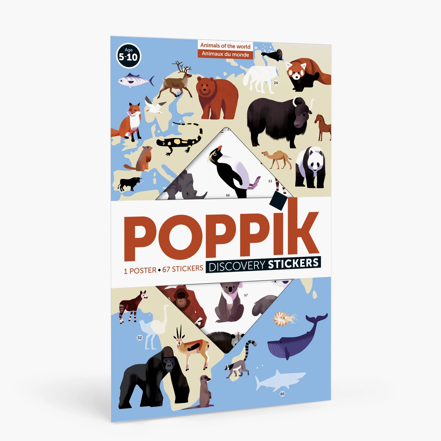 A beautiful educational sticker poster from the French brand Poppik featuring the animals of the world.