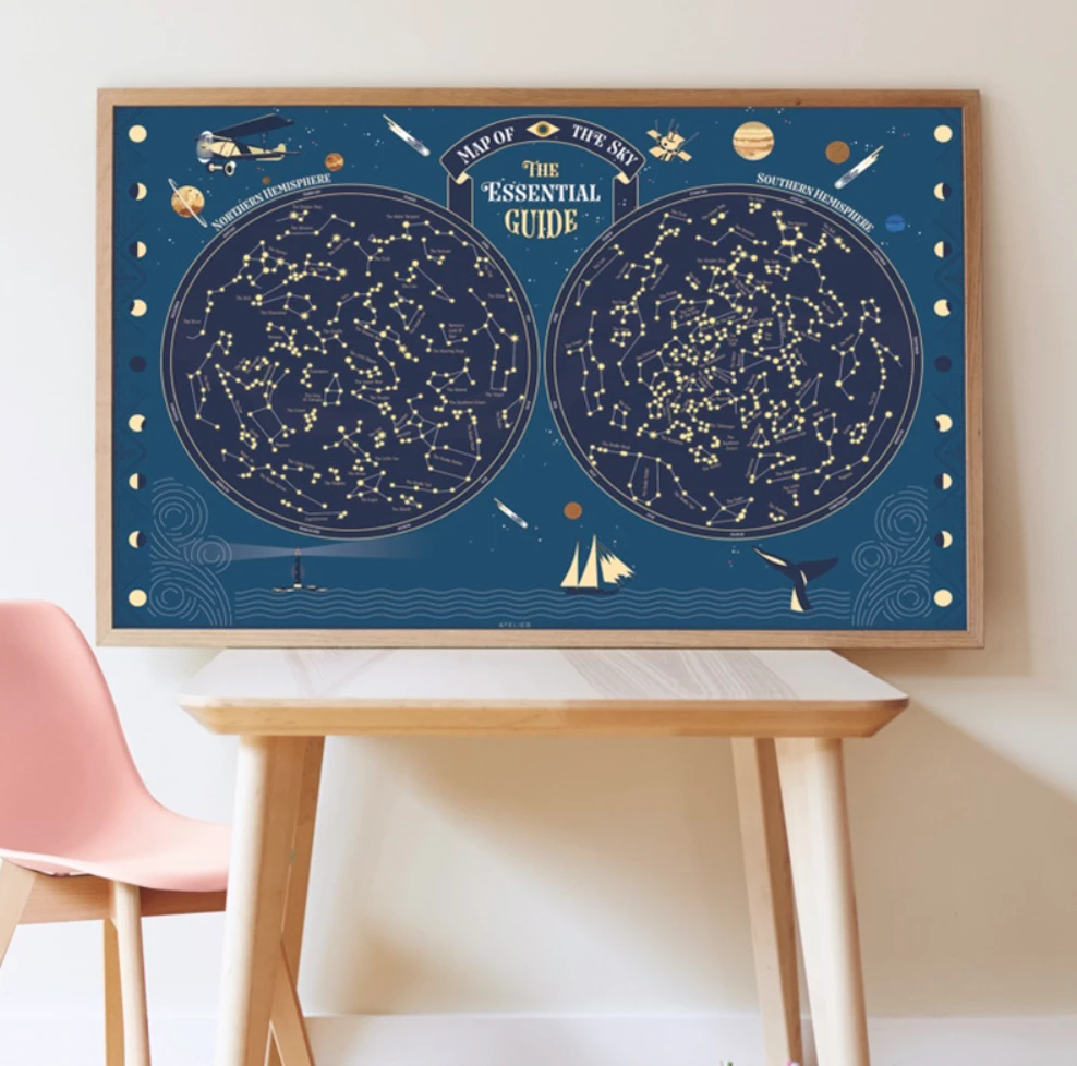 With this game, children become passionate about astronomy. They stick the glow-in-the-dark stickers on the sky map, and thus reconstruct the famous constellations. Wonderful!