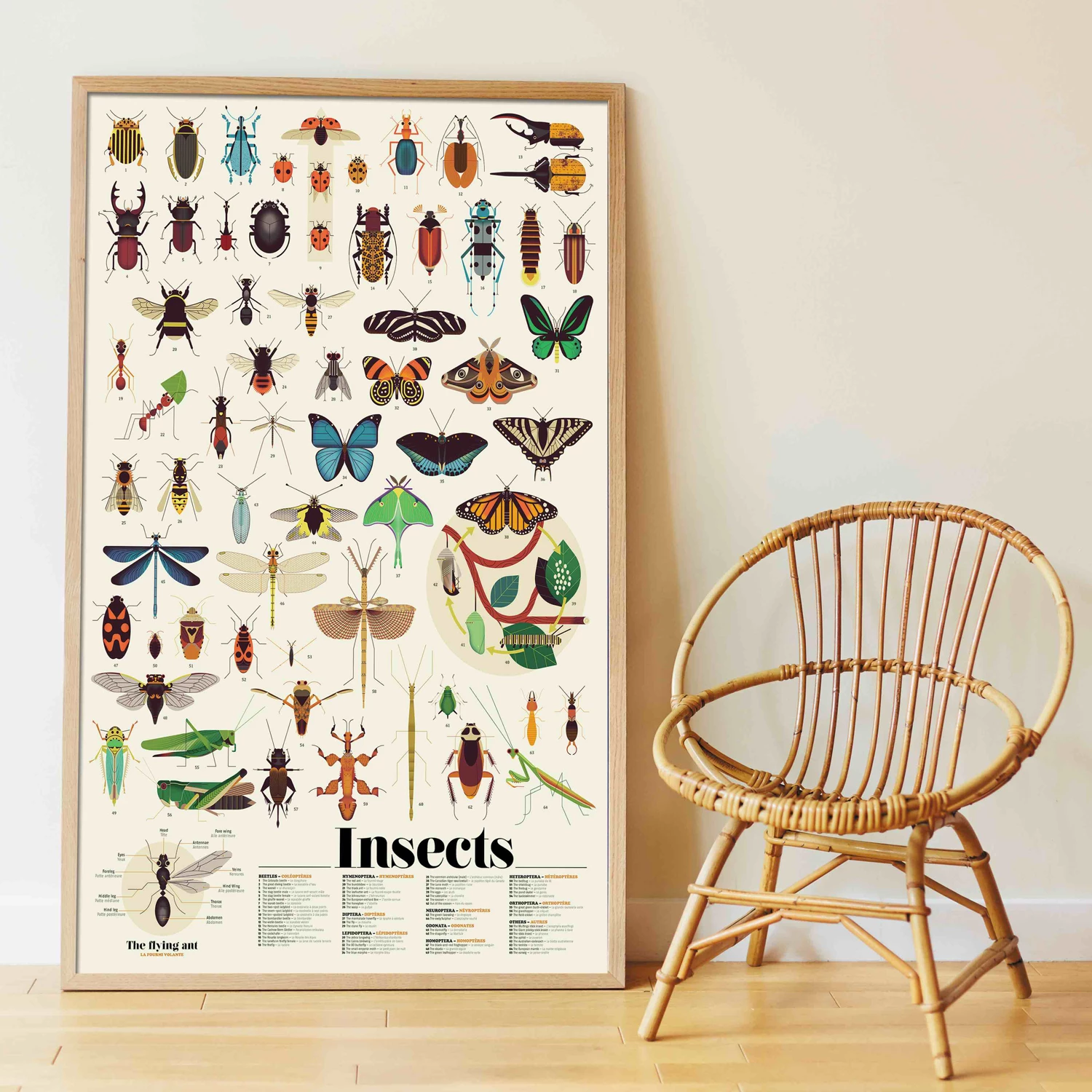 A beautiful educational sticker poster from the French brand Poppik featuring different insects.