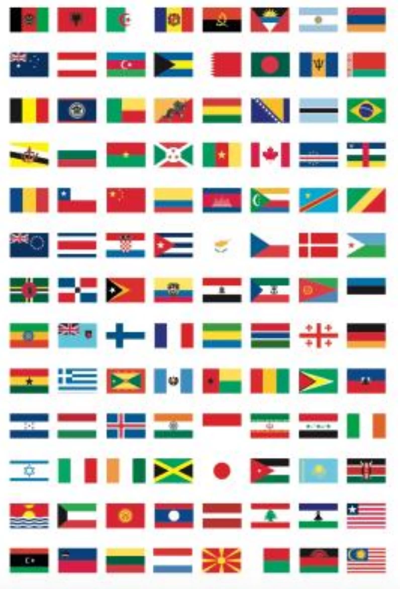 Unfold the large poster and stick the flags of the 197 countries recognized by the UN. A numbered code makes it easy to recognize the correct location of each flag. On the explanatory note, find the name and the capital of all these countries.